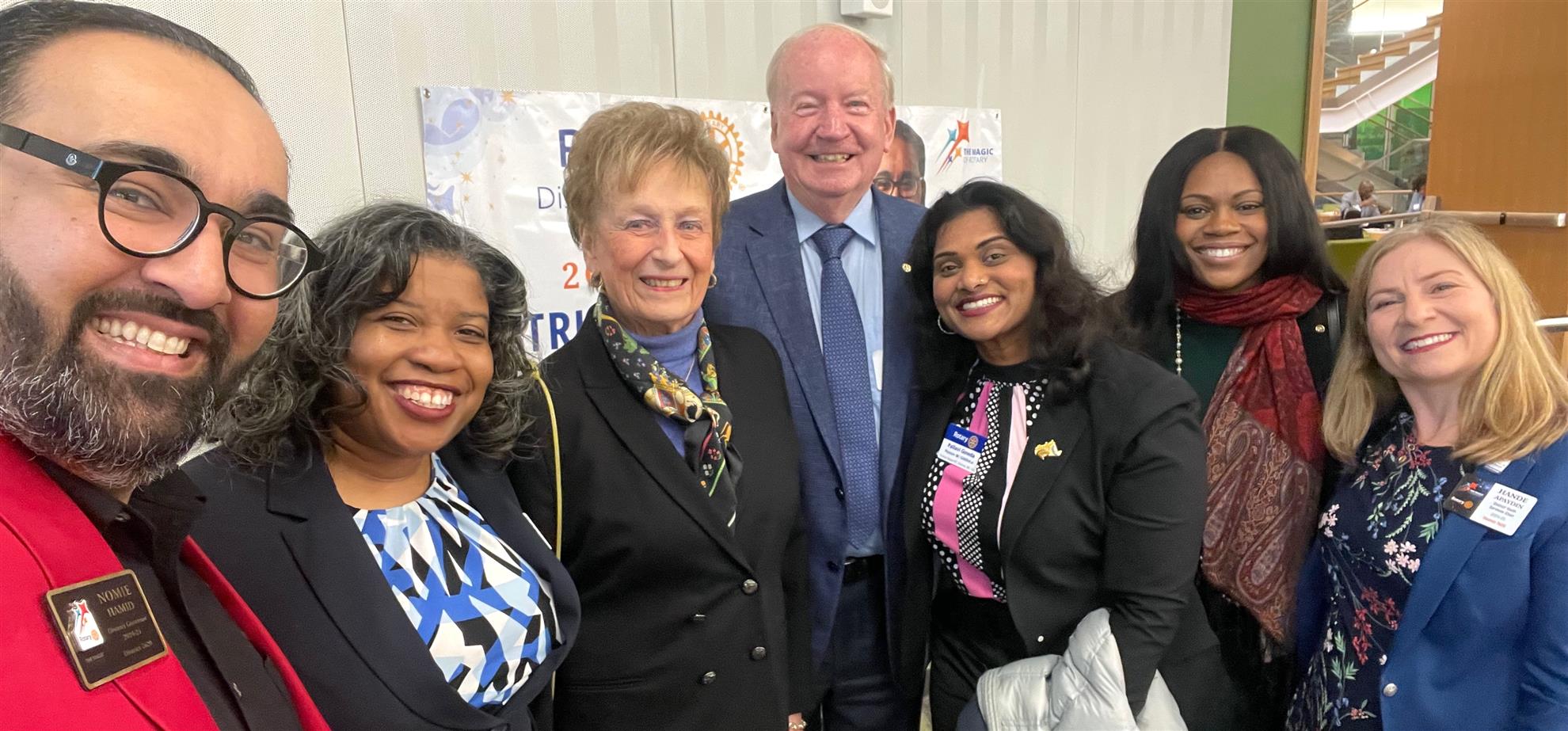 [L-R] DG Nomie Hamid, AG Chinyere Amaefule, PAG Nancy Mason, PDG Bob Nelson, Dr. Pallavi Gowda, County Council Member Laurie-Anne Sayles, AG Hande Apaydin
