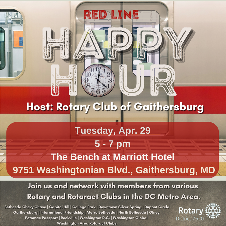 Gaithersburg Rotary Hosts Red Line Happy Hour on Tuesday, April 29, 2025